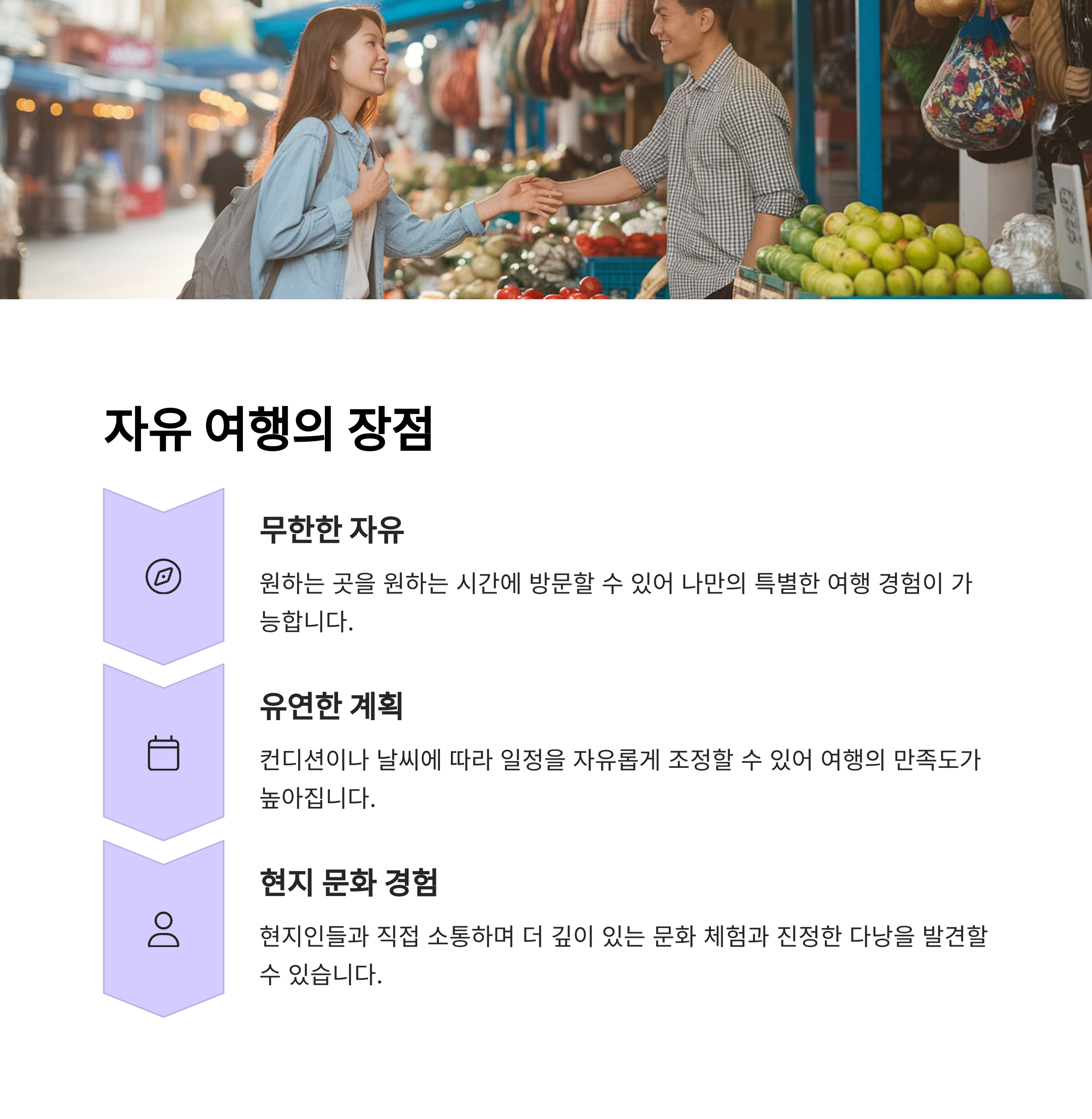 자유 여행은 맞춤형 일정과 유연성이 장점입니다.
