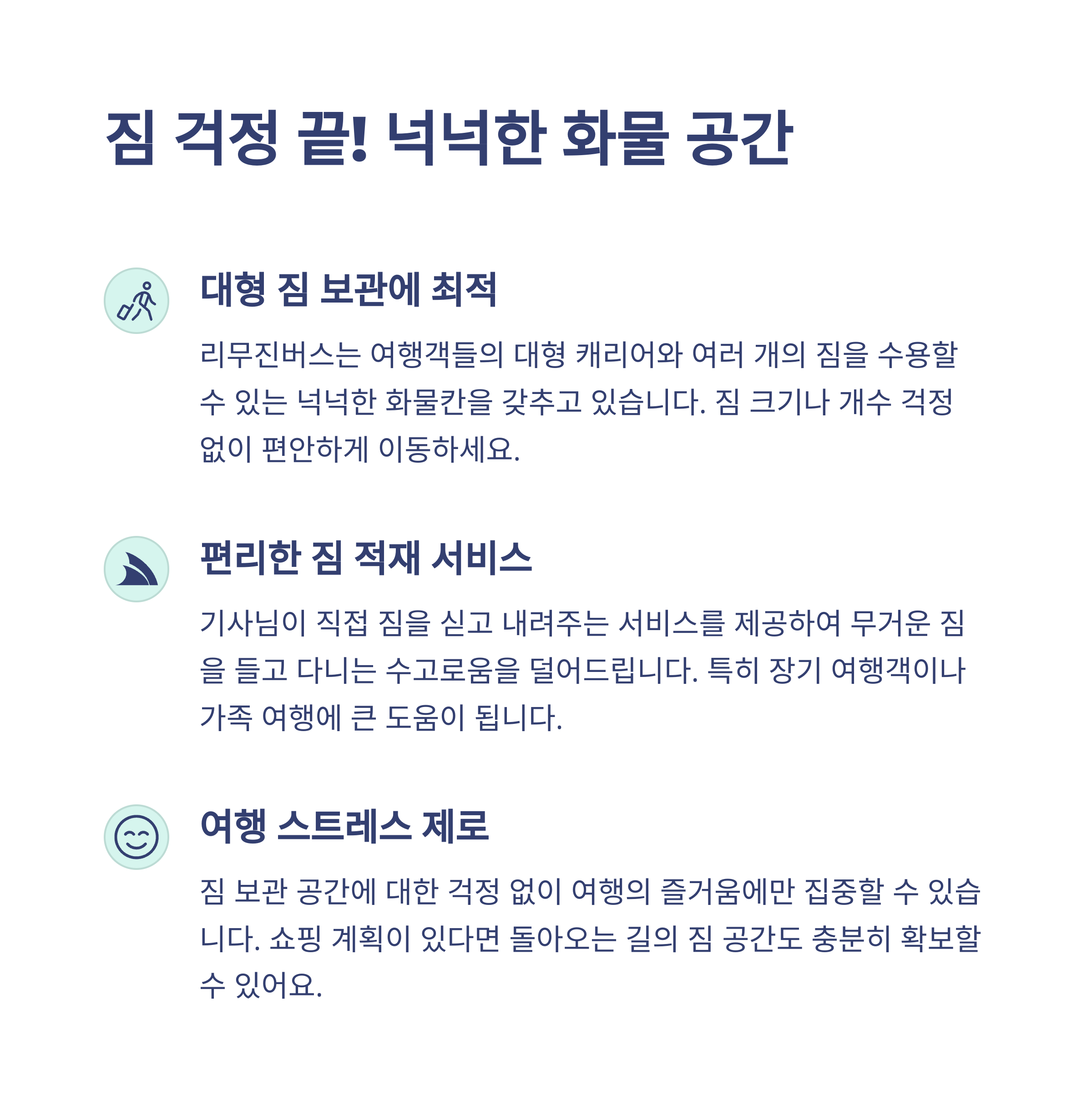 리무진버스는 짐이 많은 여행객에게 특히 유용합니다.