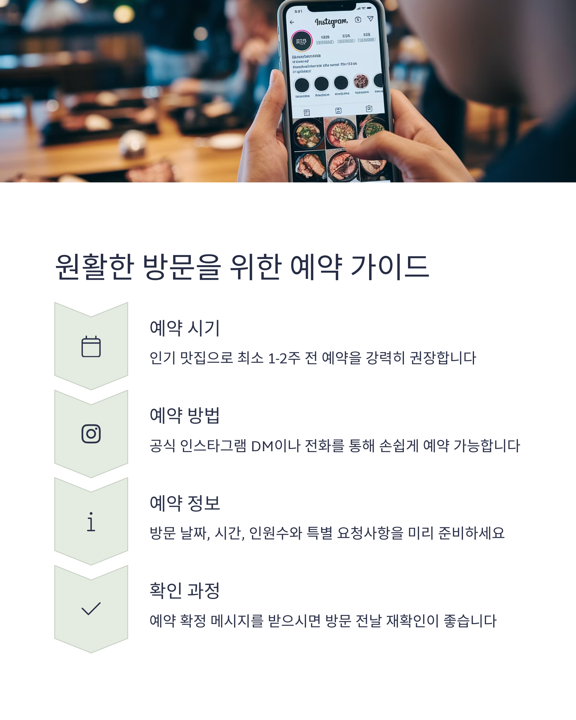 전화 예약과 인스타그램 메시지를 통해 예약할 수 있습니다.