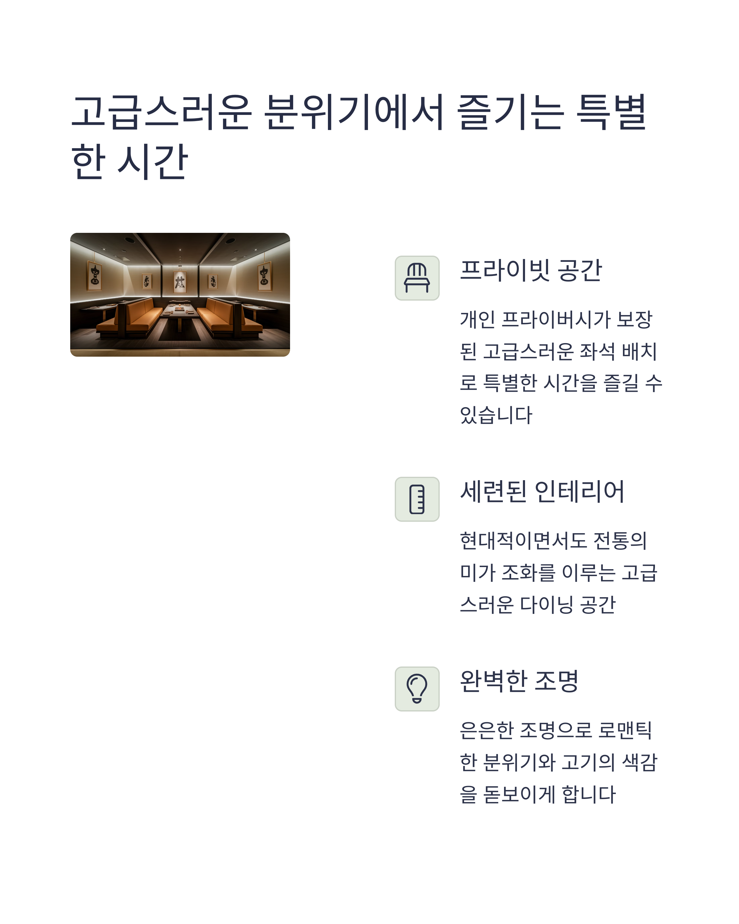 프라이빗한 파티션 좌석 배치는 고객들에게 편안하고 조용한 식사 환경을 제공합니다.