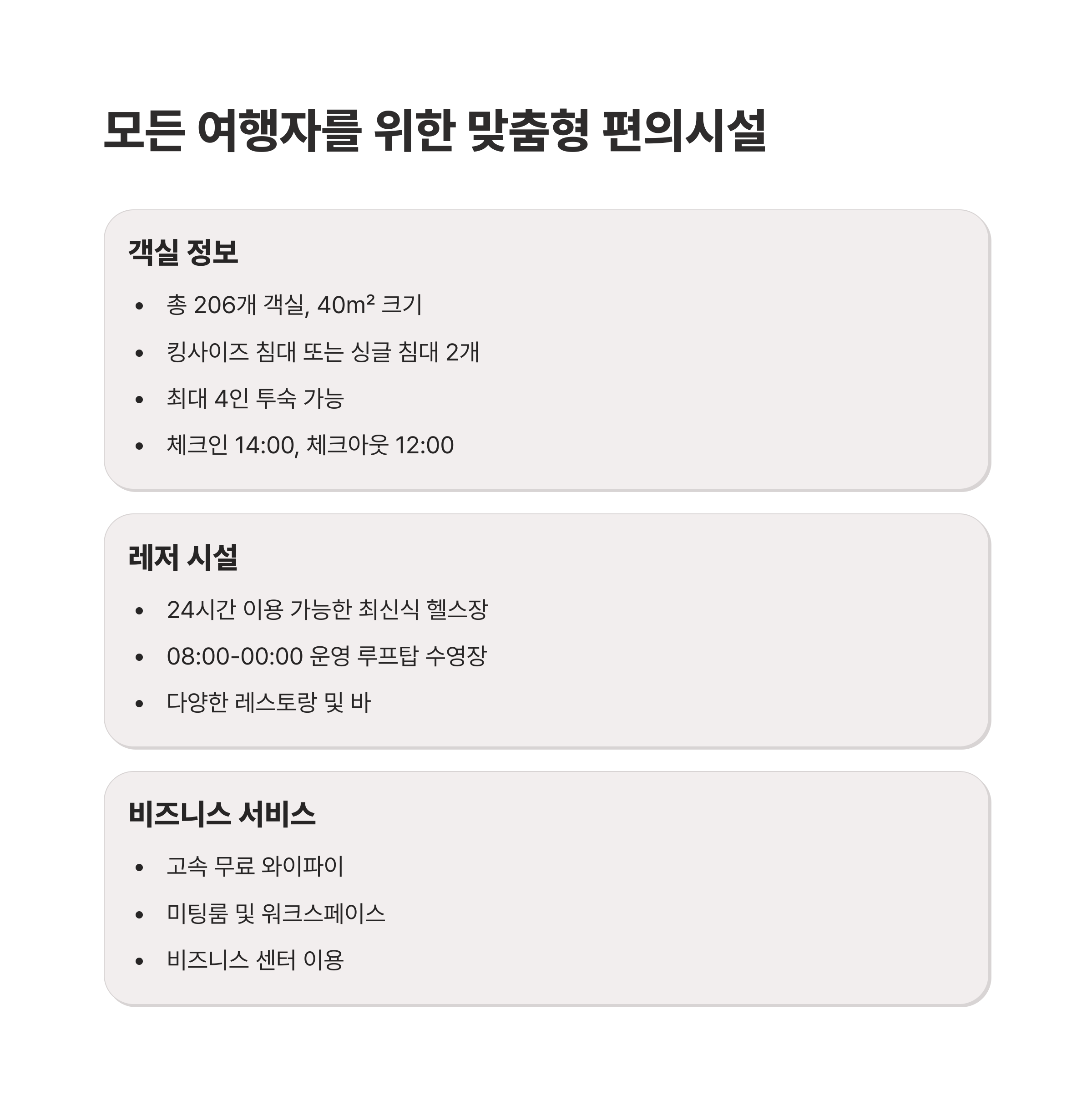 | 수영장 | 08:00 ~ 00:00 | 도시 야경 뷰 | 타월 제공 |
