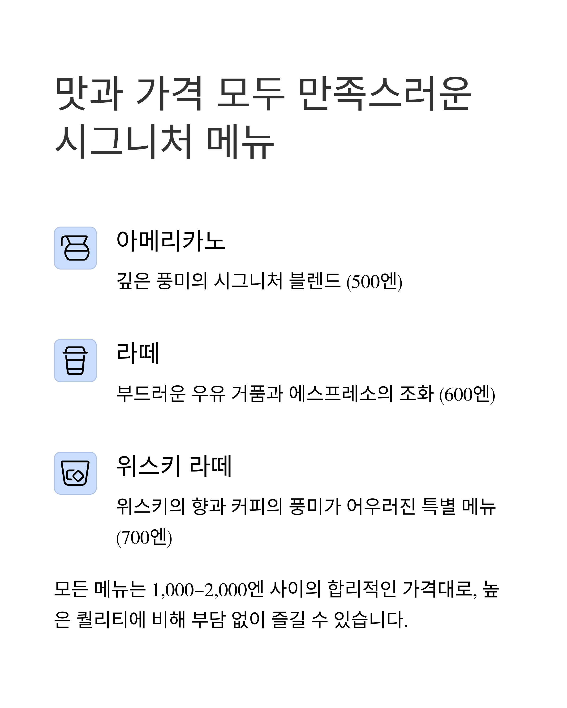 | 메뉴 | 가격 (엔) |