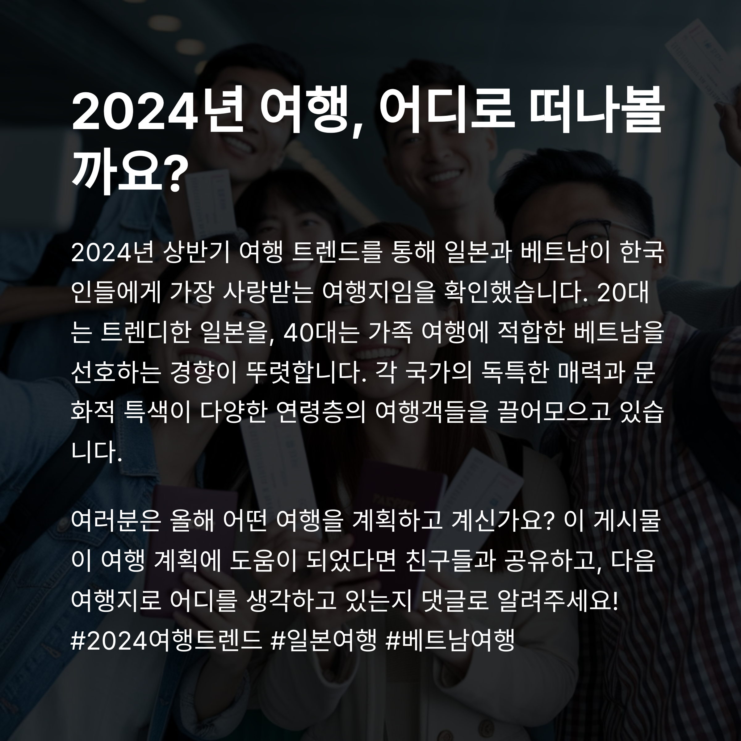연령별 데이터 분석에서도 뜨거운 반응이 나타났는데, 20대는 일본, 40대는 베트남을 주로 선택하며 각 세대의 선호가 뚜렷하게 드러났습니다.