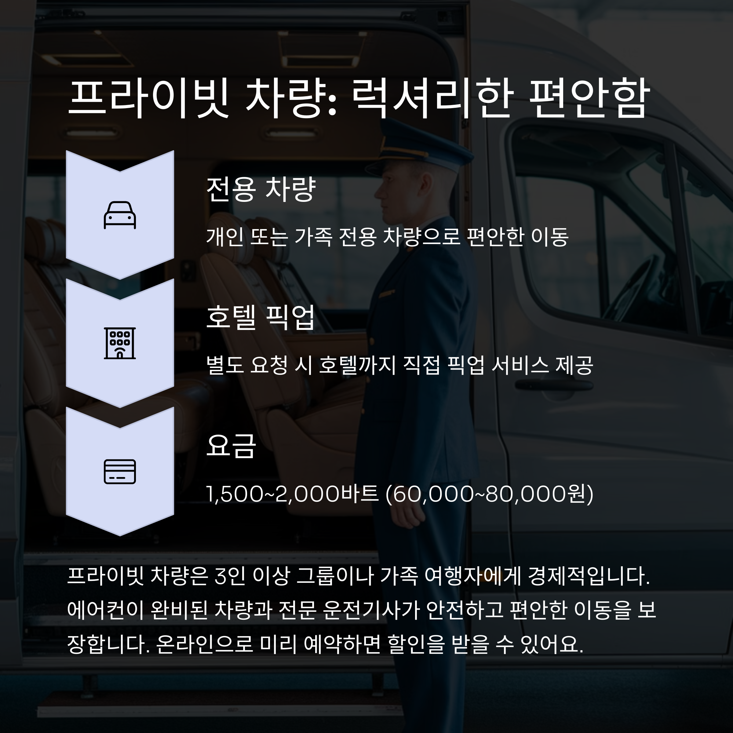 프라이빗 차량 1500 ~ 2000 약 2시간 개인 공간 제공
