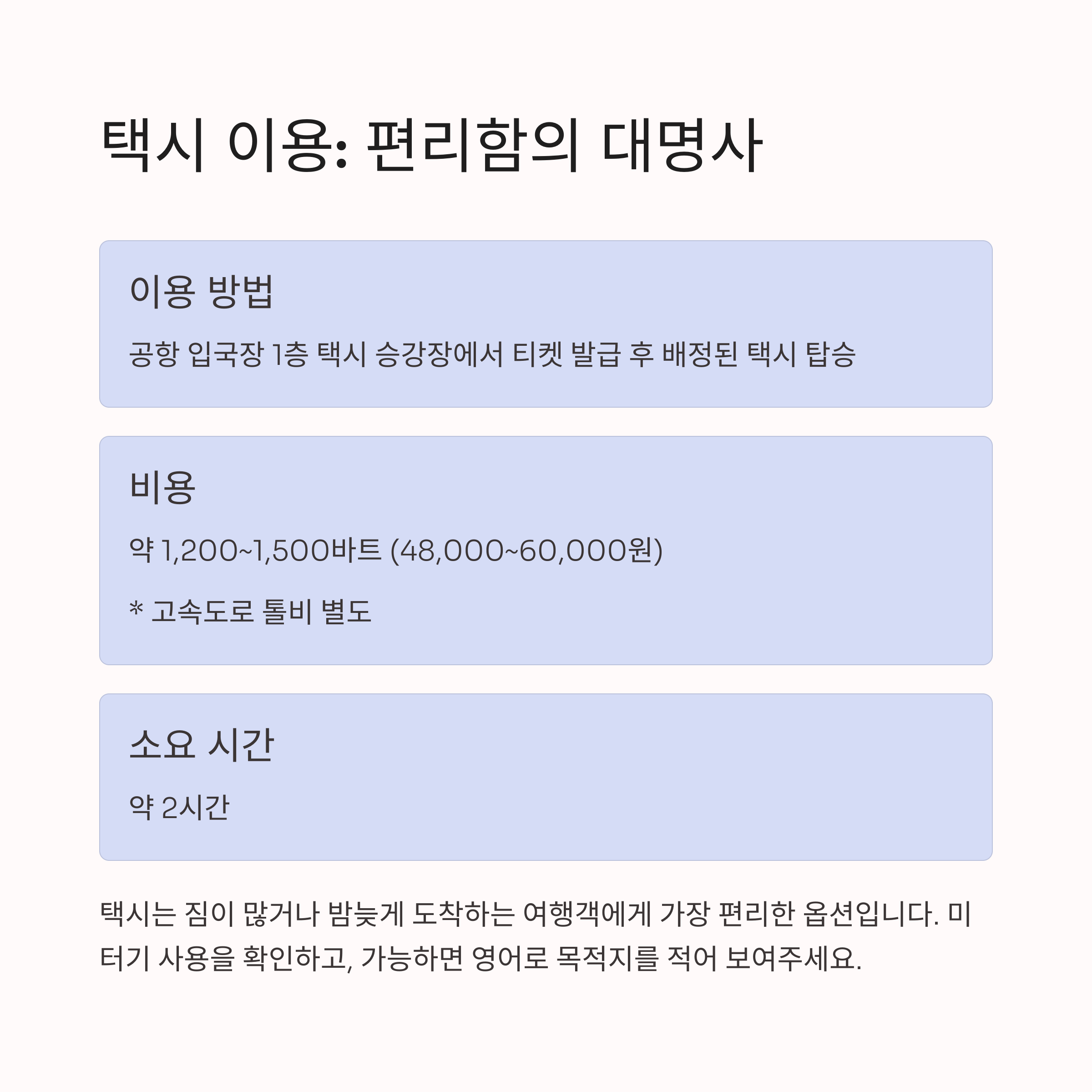 1. 수완나품공항 택시는 편리함을 선호하는 여행자에게 최적의 선택