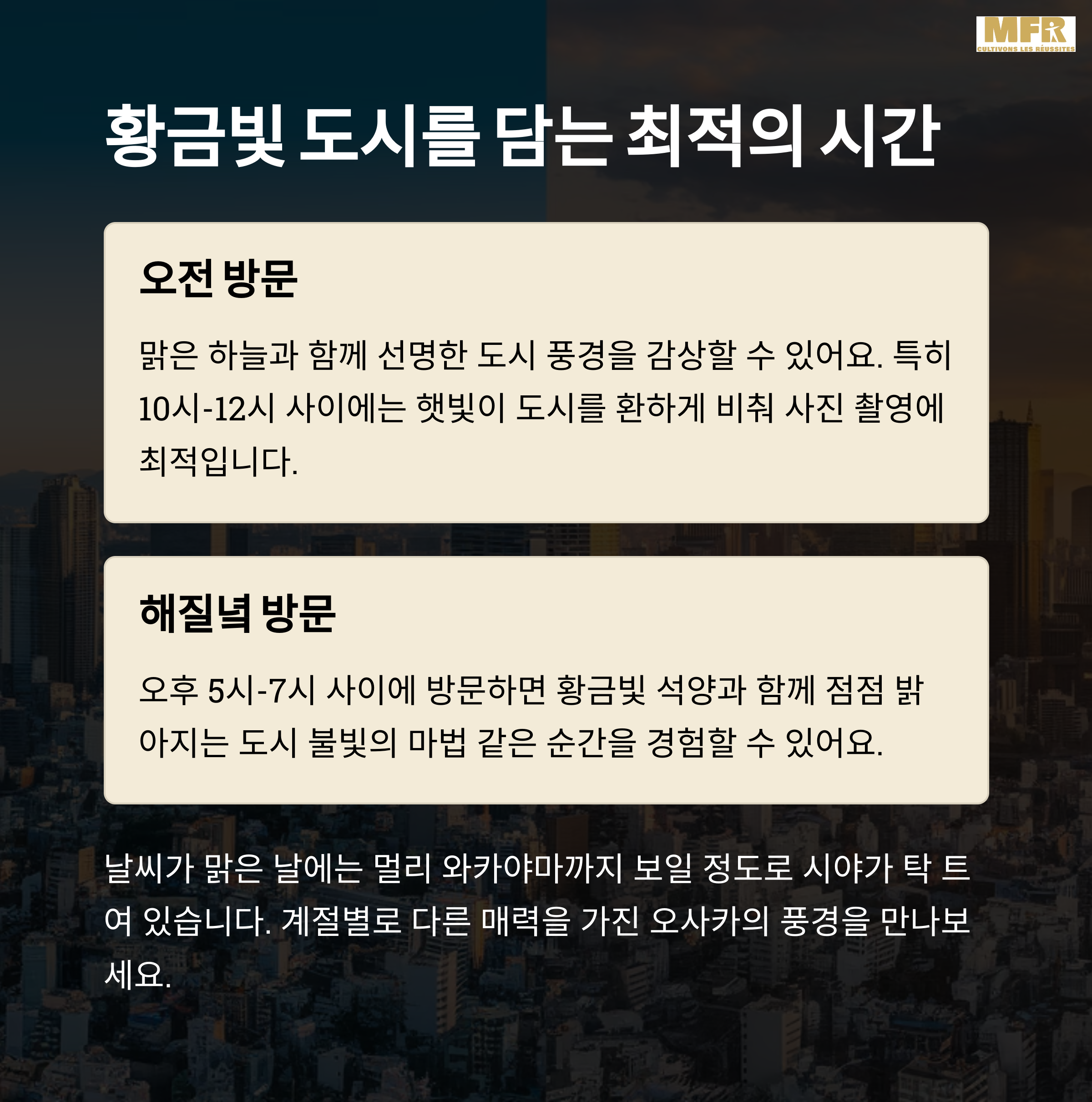 | Q. 아베노 하루카스 300 전망대 방문 시 추천 시간은 언제인가요? |