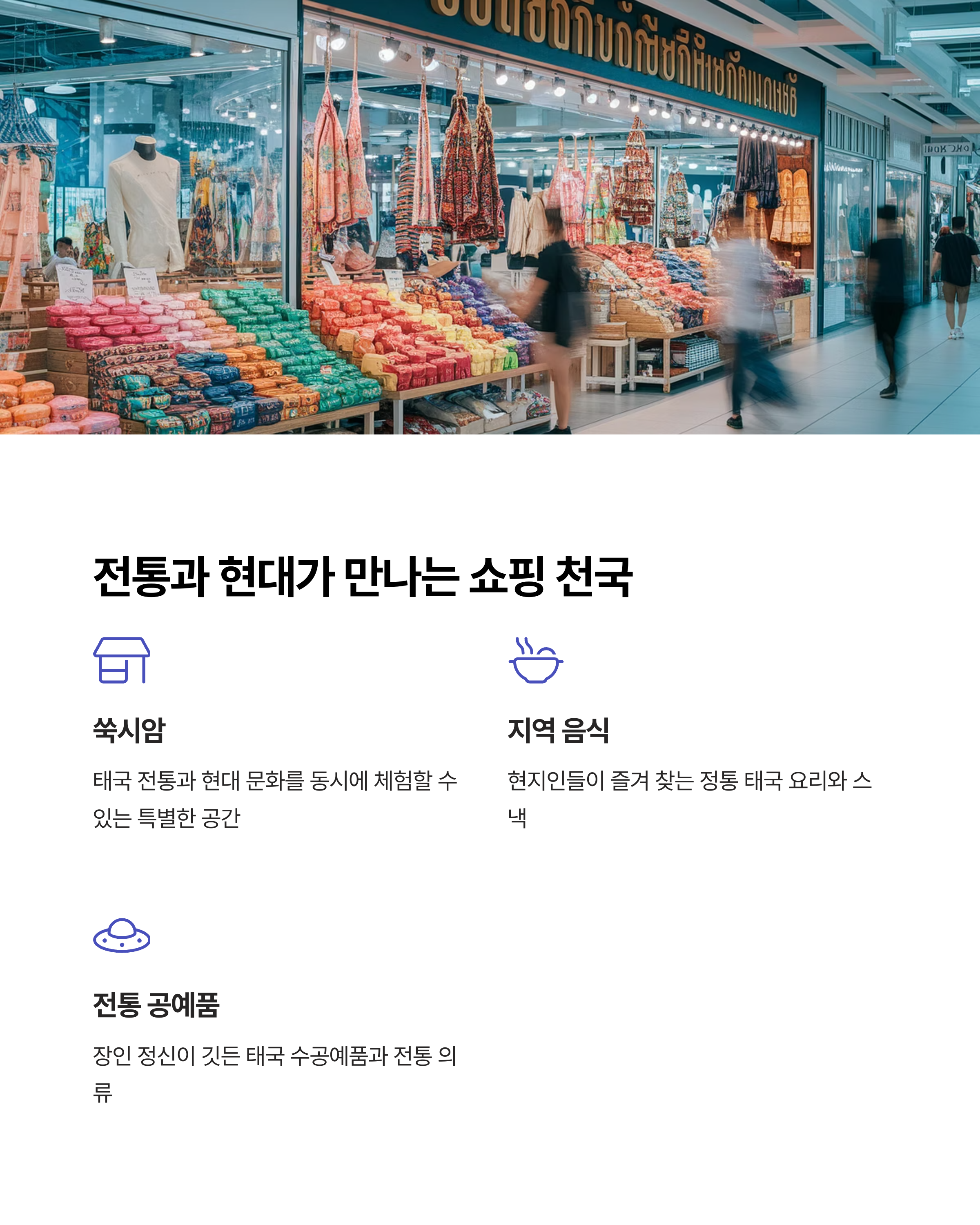 - 쑥시암은 태국 전통과 현대 문화를 경험할 수 있는 대표 공간입니다.