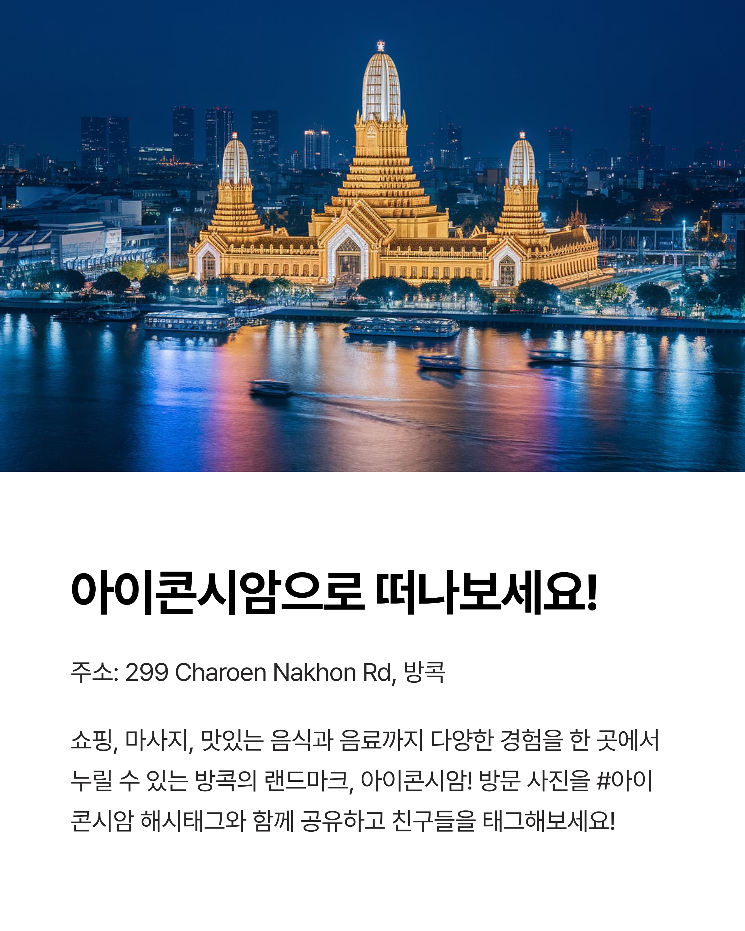오늘은 방콕에서 빼놓을 수 없는 쇼핑과 힐링 명소인 아이콘시암을 소개합니다.