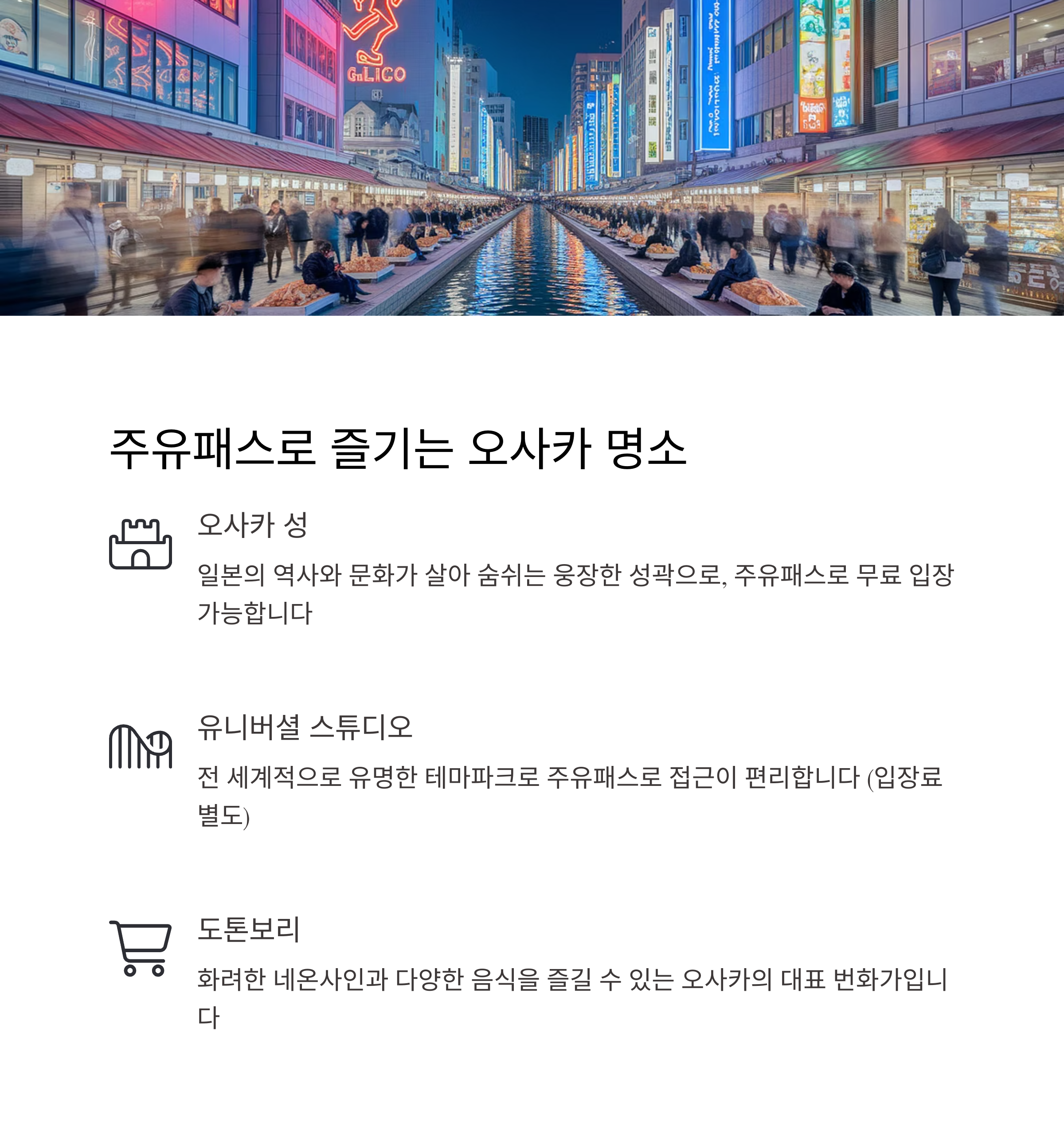 최상의 교통패스를 선택함으로써 효율적인 오사카 여행을 즐기실 수 있습니다.