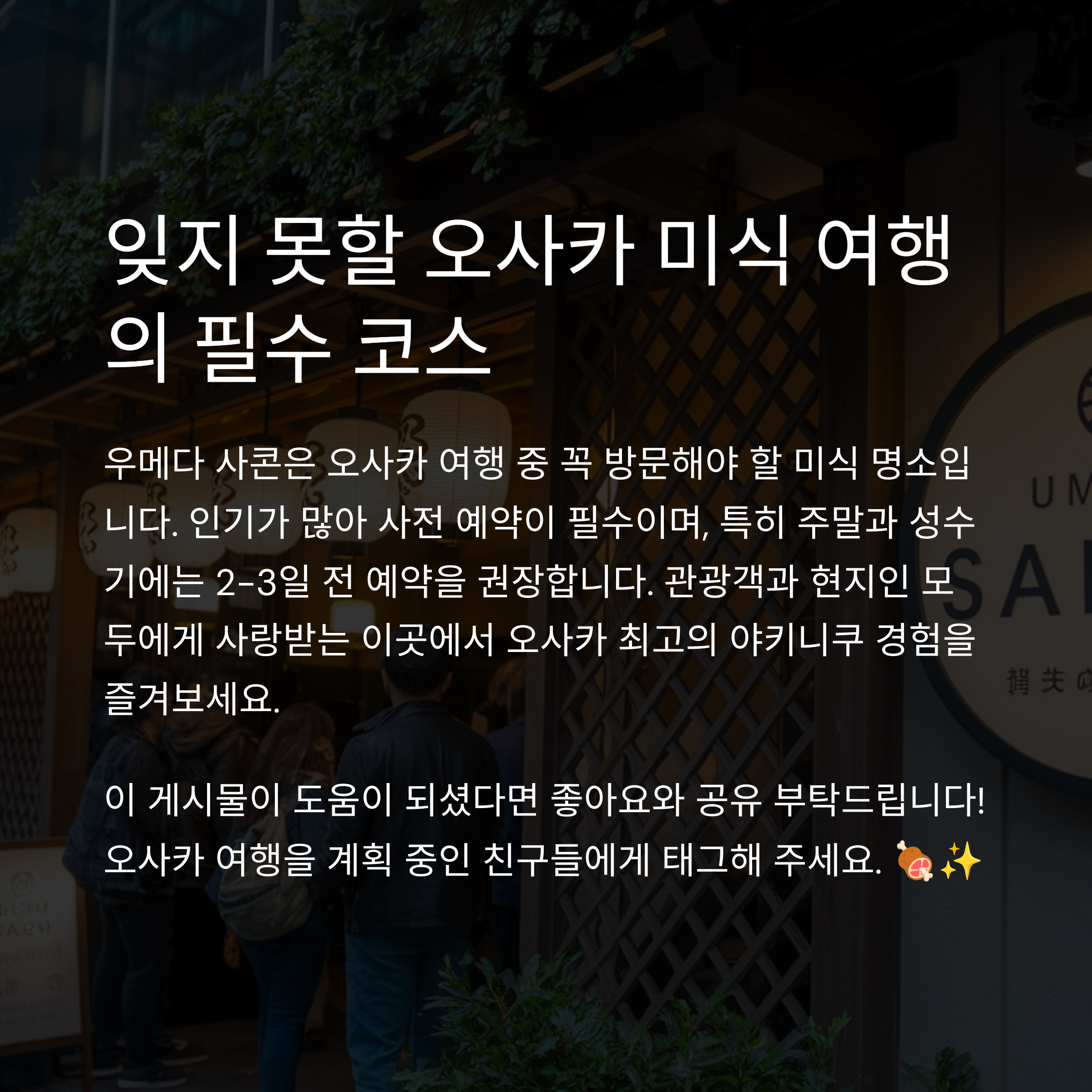오사카 및 해외 명소 방문 시, 현지 문화를 존중하며 새로운 경험을 즐겨보시기 바랍니다.