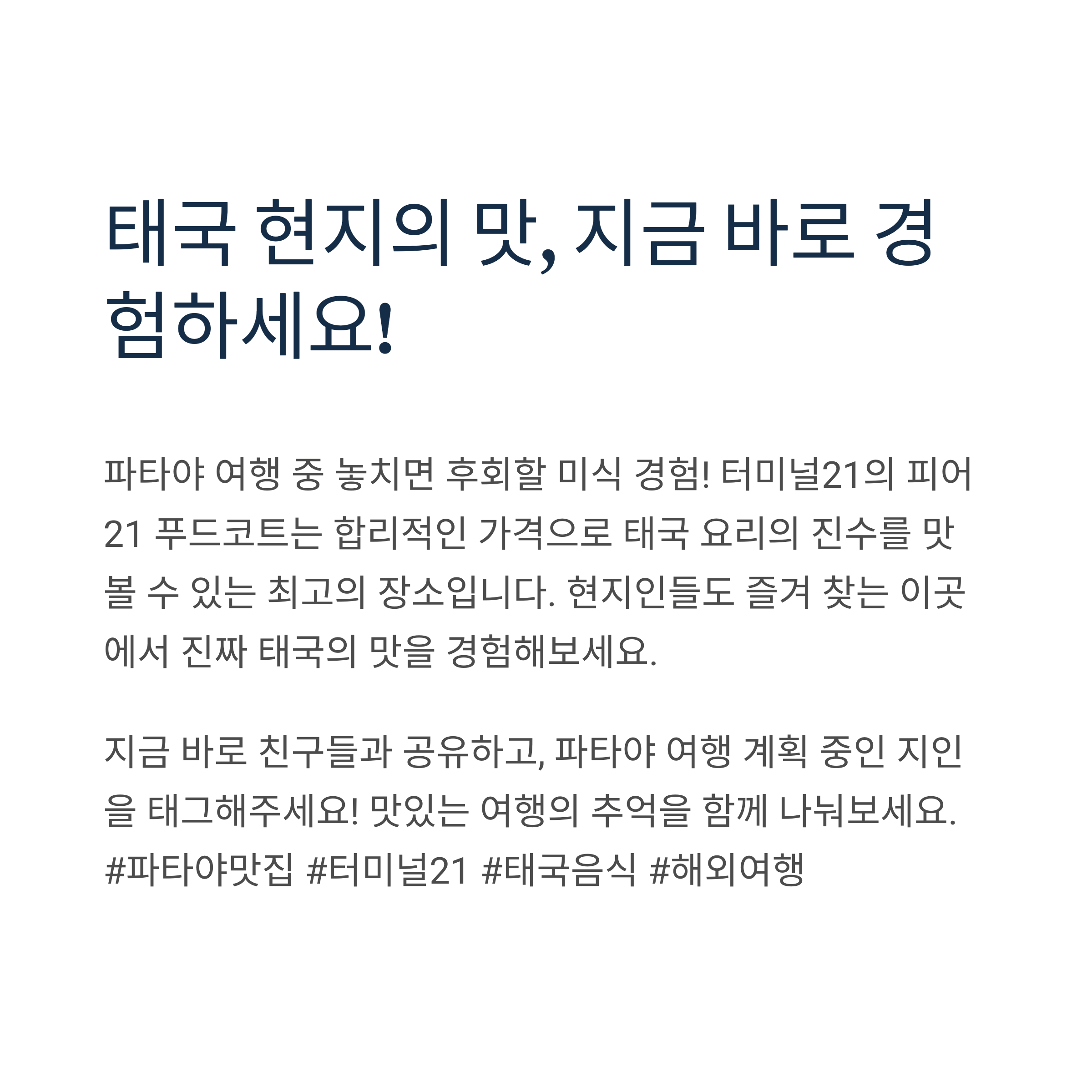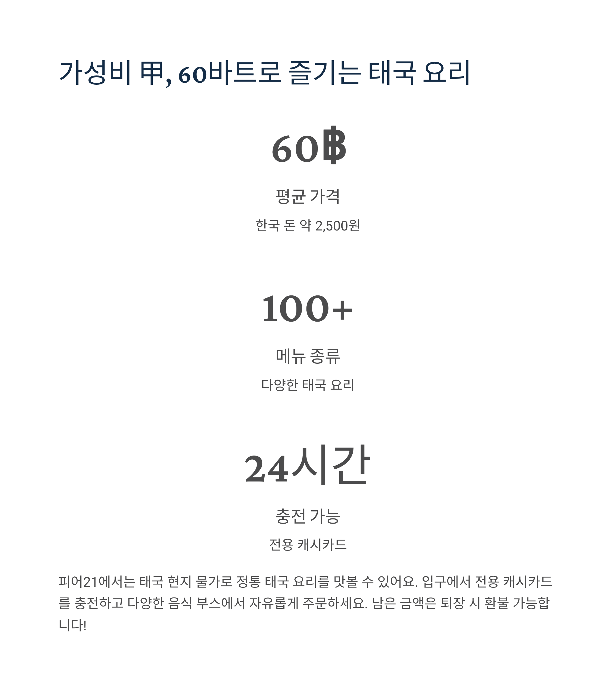 특히, 피어21 푸드코트는 합리적인 가격으로 태국 음식을 맛볼 수 있는 장소입니다.