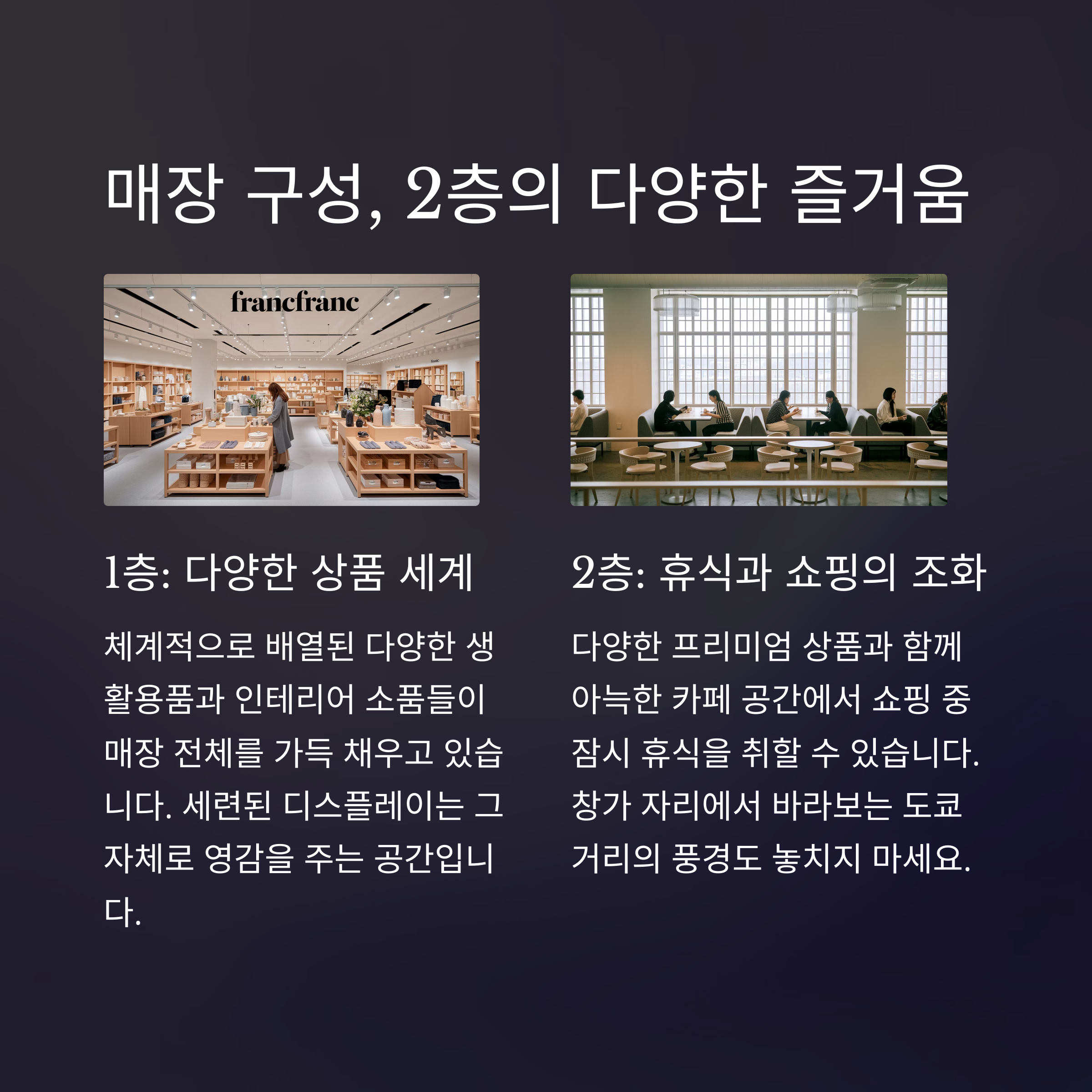프랑프랑 도쿄 아오야마점은 감각적이고 실용적인 인테리어 소품으로 일본 여행에서 더욱 특별한 쇼핑 경험을 제공합니다.