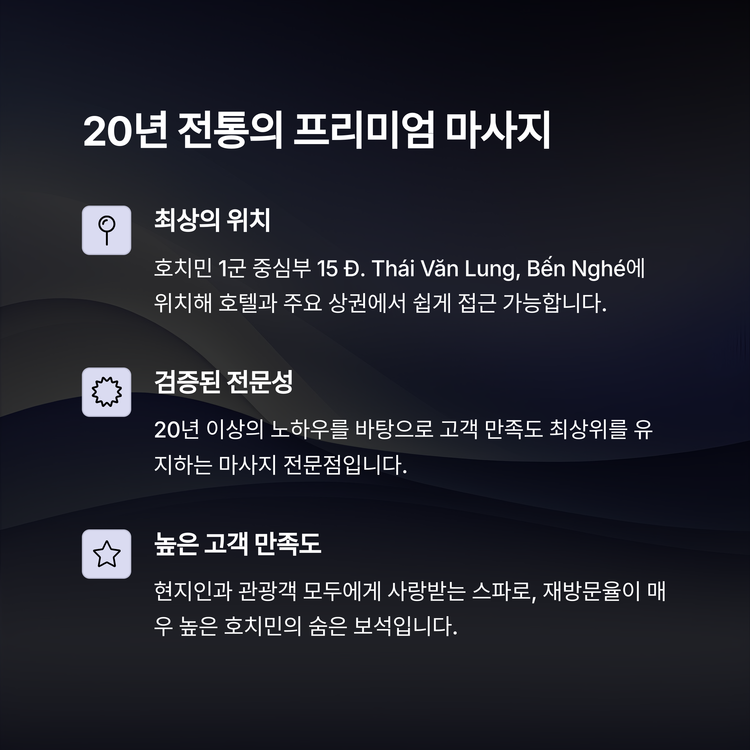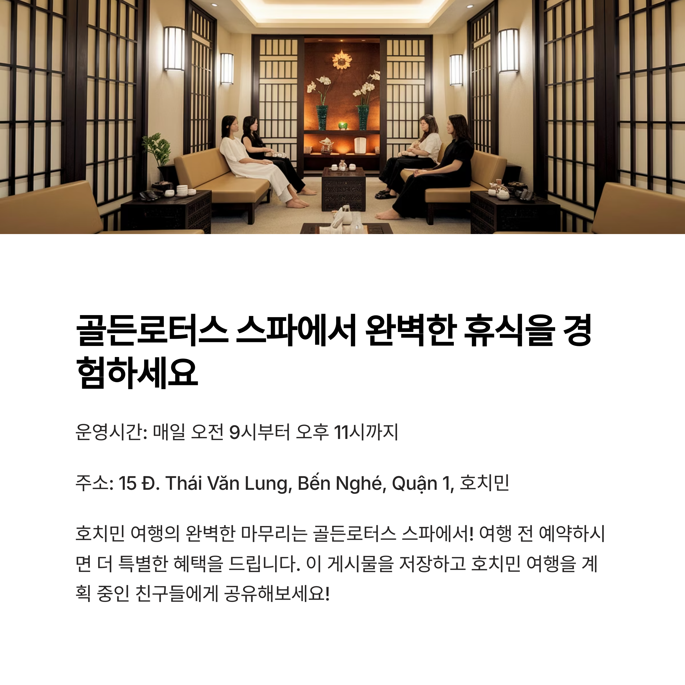 다음 번 호치민 방문 때는 골든로터스에서 완벽한 힐링 경험을 직접 느껴보세요.