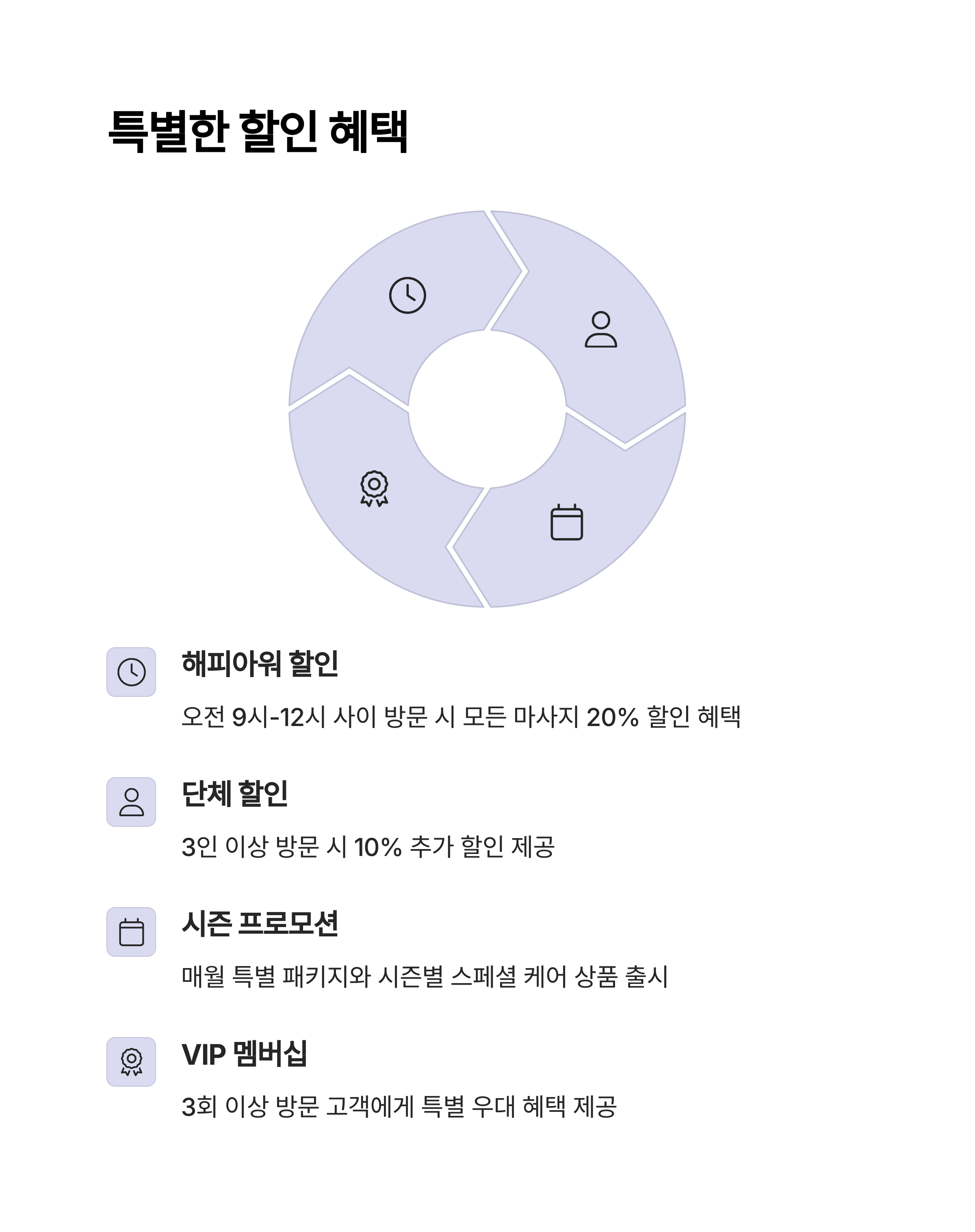마사지 프로그램뿐만 아니라 시설도 잘 관리되고 있어, 청결도와 편안함에서 높은 평가를 받고 있습니다.
