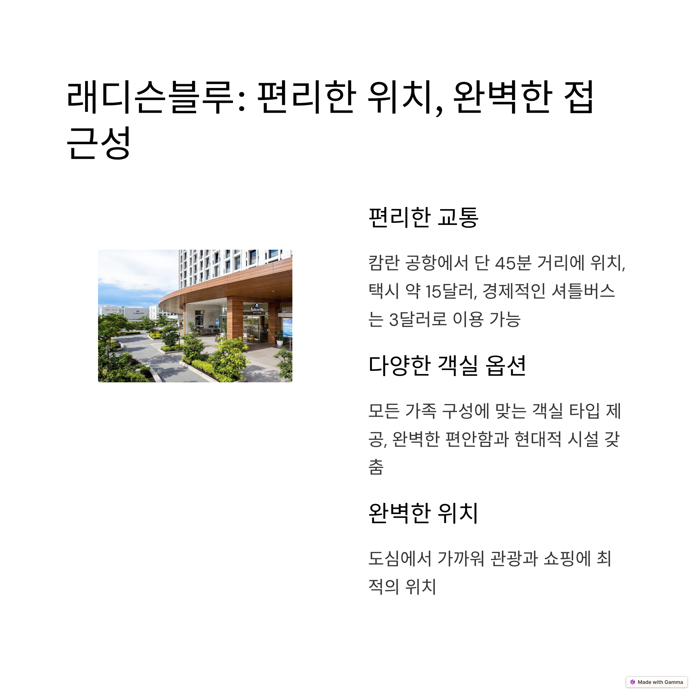 | Q. 래디슨블루 나트랑은 공항 접근성이 정말 좋은가요? |