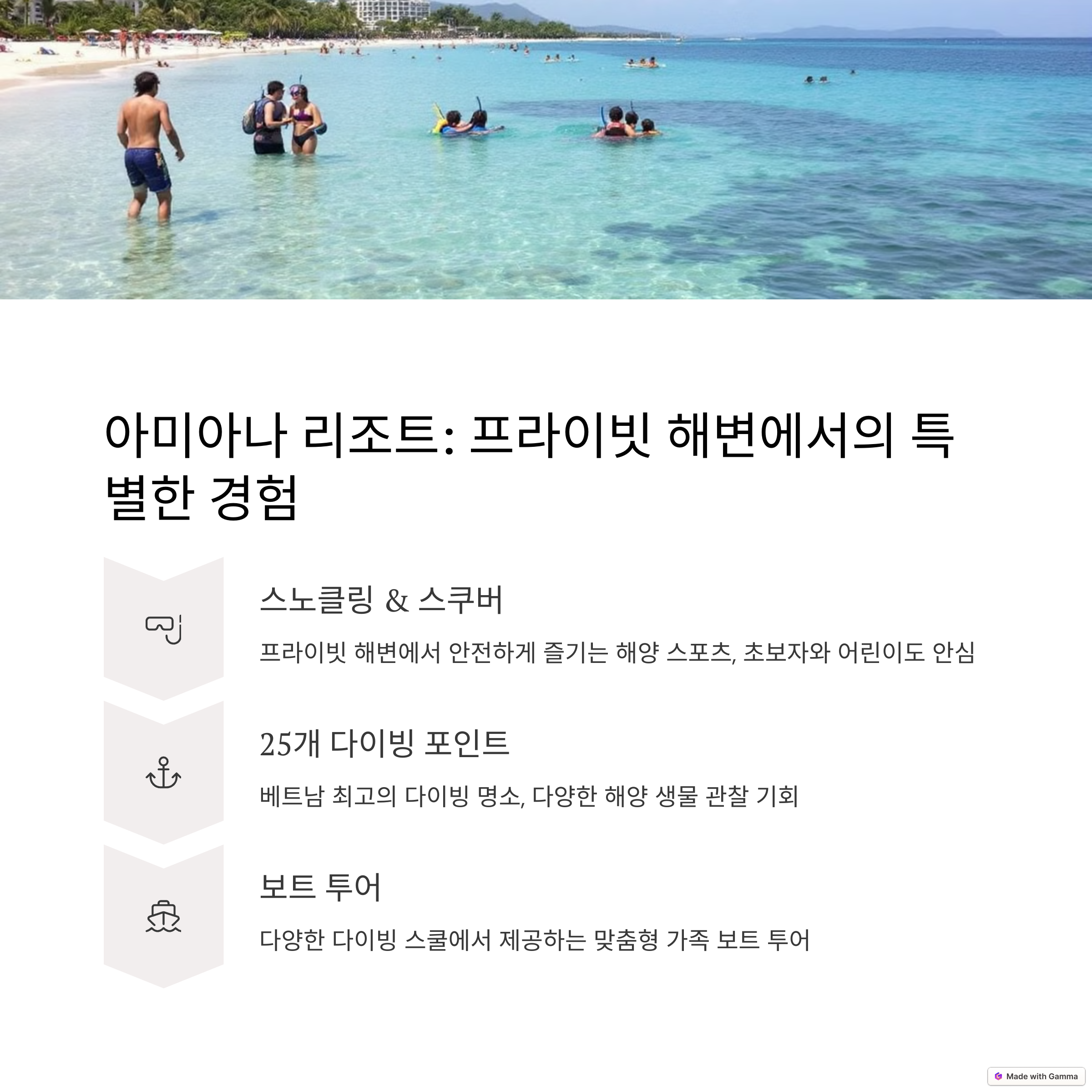 나트랑 리조트 대부분은 가족 친화적이지만, 상세 서비스는 각 리조트마다 차이가 있어 사전에 리서치를 철저히 해야 합니다.