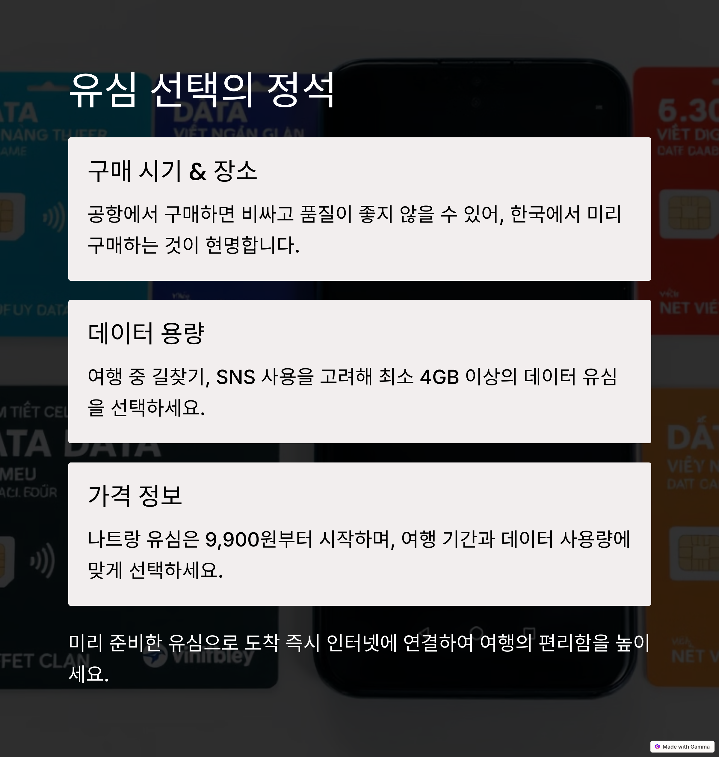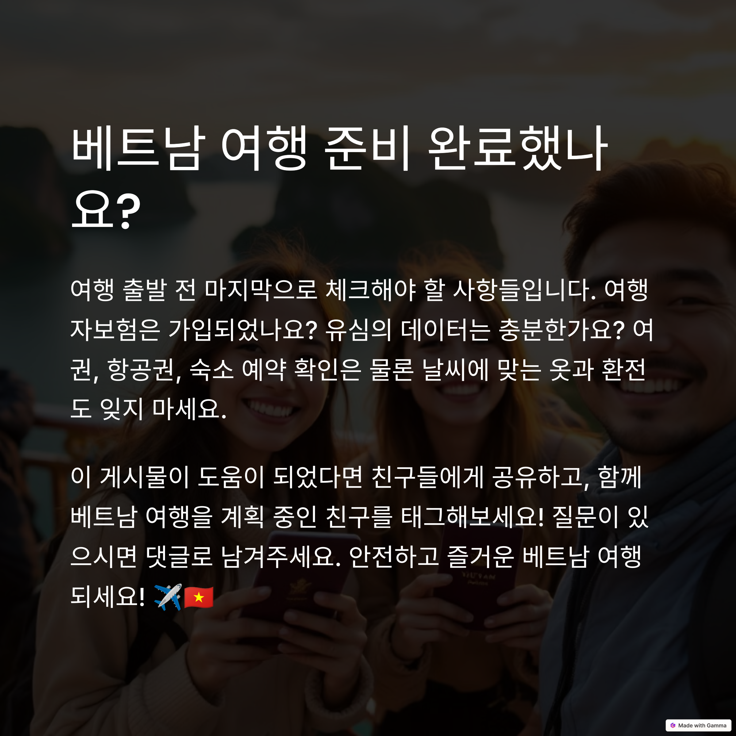 여행자보험과 유심은 베트남 여행의 안전성과 편리함을 위한 필수 아이템입니다.